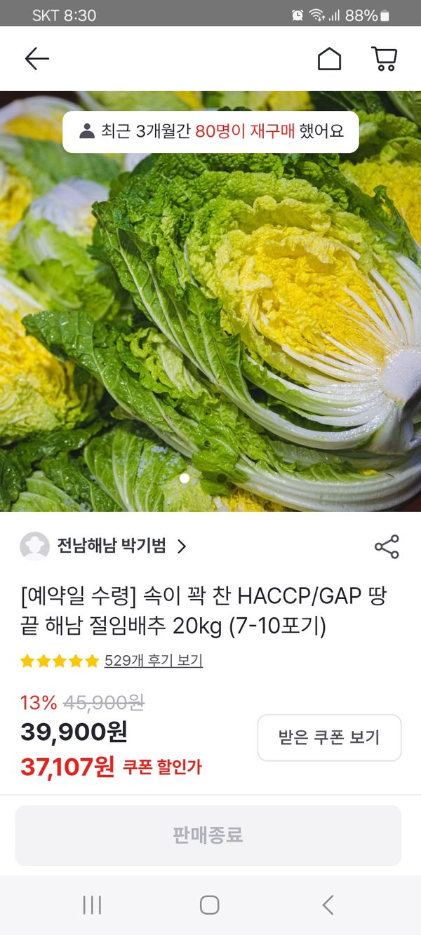 1. 김장 3일 전으로 예약 주문