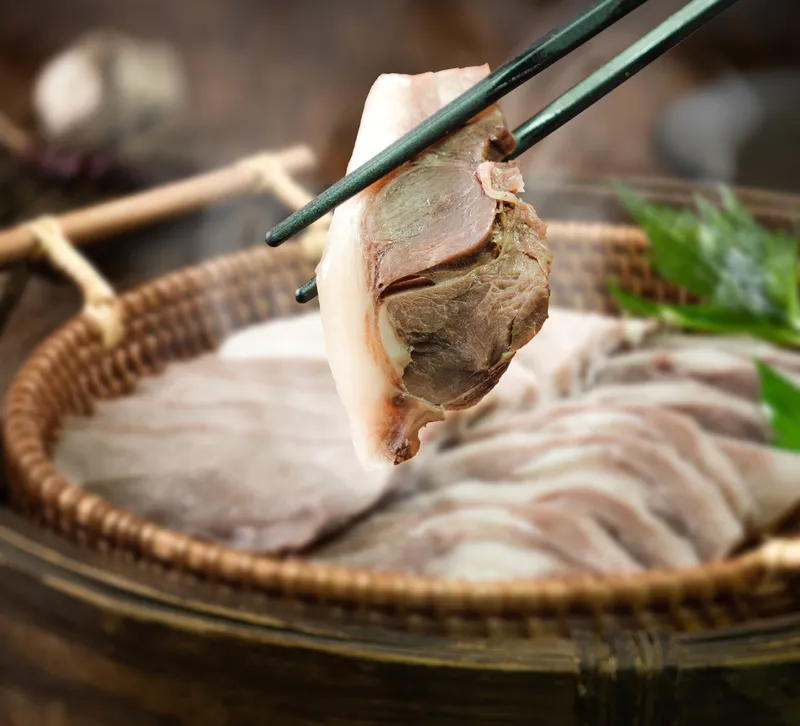 부드럽고 쫄깃한 돼지머리고기 슬라이스입니다. 돼지머리 중 가장 맛있는 항정살, 귓살, 콧살, 돈설(혀) 부위를 전통방식 비법으로 삶아내어 잡내 없이 담백한 맛을 만들었어요. 평소에 돼지 냄새에 거부감이 있으신 분들도 맛있게 즐길 수 있답니다.