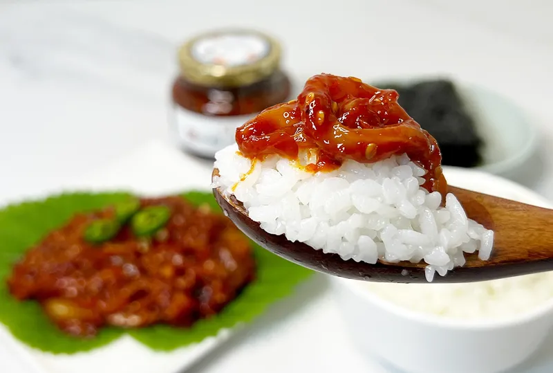 젓갈 좋아해서 구매. 마늘이랑 마늘쫑이 살짝 들어있어서 좋아요. 청양고추 더해서 매콤하게 먹으니 밥한그릇 뚝딱입니다. 맛있어요~ 자먹고 재구매합니다.