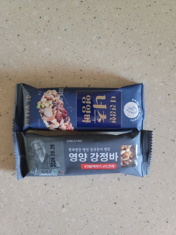 명절 선물로 친정에 보내드렸는데 견과류가 강정처럼 바 형태로 되어있으니 먹기도 편하고, 많이 달지않고, 딱딱하지 않아서 좋다고 하시네요. 강정바는 뻥튀기 곡물 위주라 좀 더 부드럽고, 너츠바는 견과류 위주라 견과류 챙겨 드시는 분들에게 좋을 것 같아요.