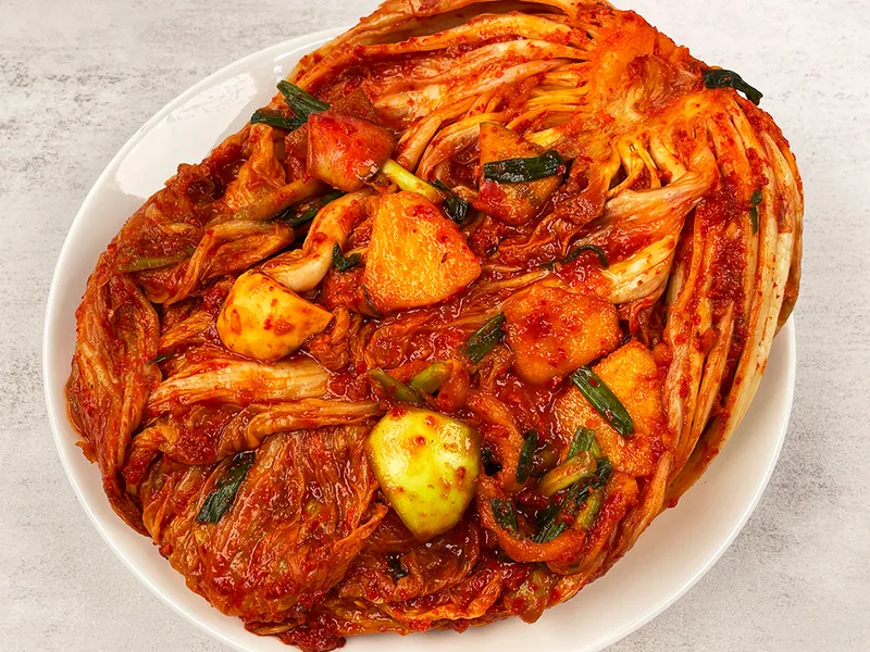 포기김치의 핵심인 배추는 시기별로 가장 좋은 것만 골라 사용합니다. 겨울에는 해남 배추를, 봄에는 중부 지방 배추를, 여름과 늦가을에는 강원도 고랭지 배추를 사용합니다. 품질이 뛰어난 배추를 사용하기 때문에 아삭아삭한 식감이 아주 좋습니다.