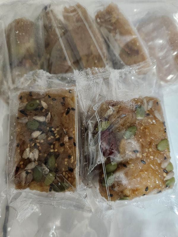 최상급의 통 대추를 이용하여 대추고를 만들어 사용하고 있습니다. 대추를 오랜 시간 푹 끓여 깊은 맛이 우러난 대추고를 이용해 반죽하고 신선한 재료들을 넣어 약밥을 만듭니다. 물이 아닌 오로지 대추고로만 만들어 더욱 건강한 약밥이랍니다.