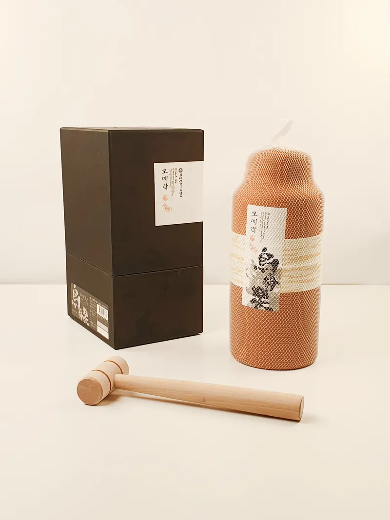 품질 좋은 국산 배 증류원액과 구운 매실로 정성껏 만든 항온 암실에서 숙성한 40도 프리미엄 고도주예요. 여기에 천연 황토로 빚은 퍽토기로 감싸 완성했답니다. 생일이나 기념일, 승진, 연말 연시 등 세레모니하기 참 좋은 술이에요. 토기를 망치로 퍽하고 깨서 사랑하는 사람들과 즐겁게 한 잔을 나눠보세요.