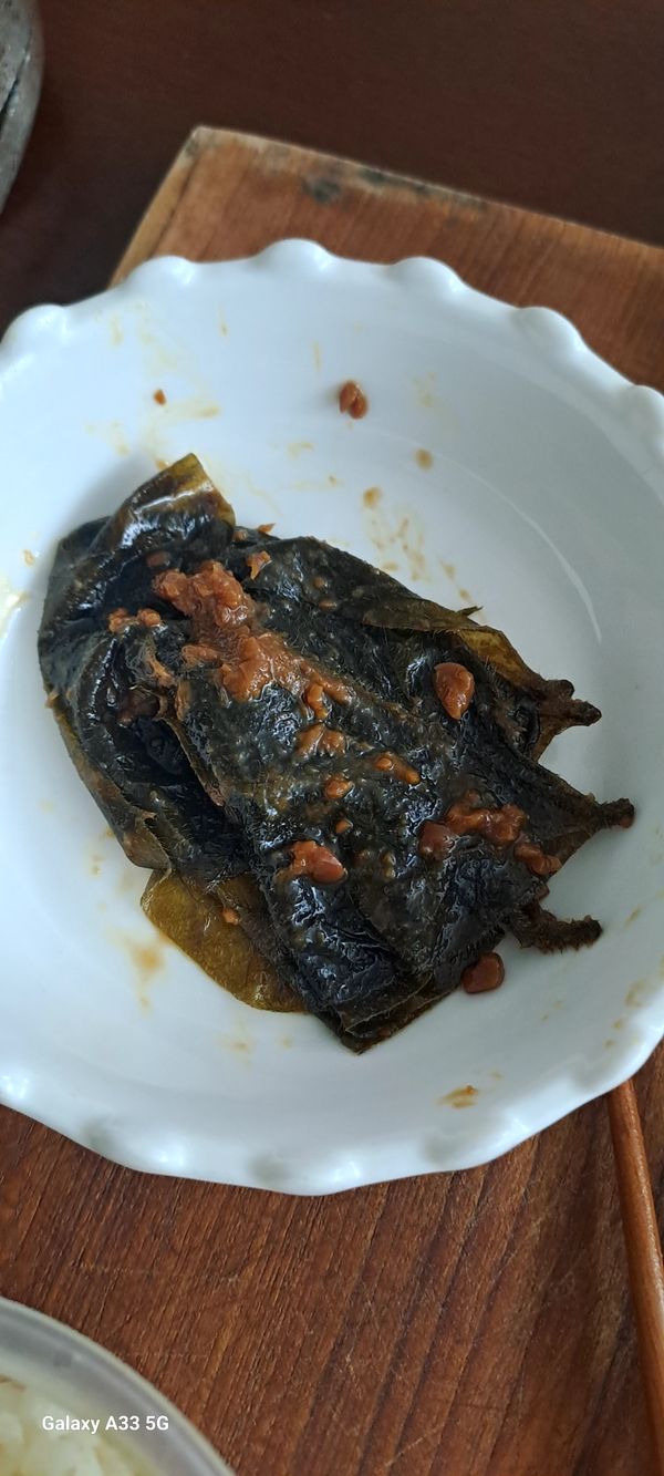 잘 삭혀져 양념도 잘 배여 있네요. 맛있습니다. 약간 질긴 것도 있지만 먹을만 해요. 지난 번 단풍콩잎은 좀 많이 질겼댔어요. 조금만 더 싸면 좋겠어요~~