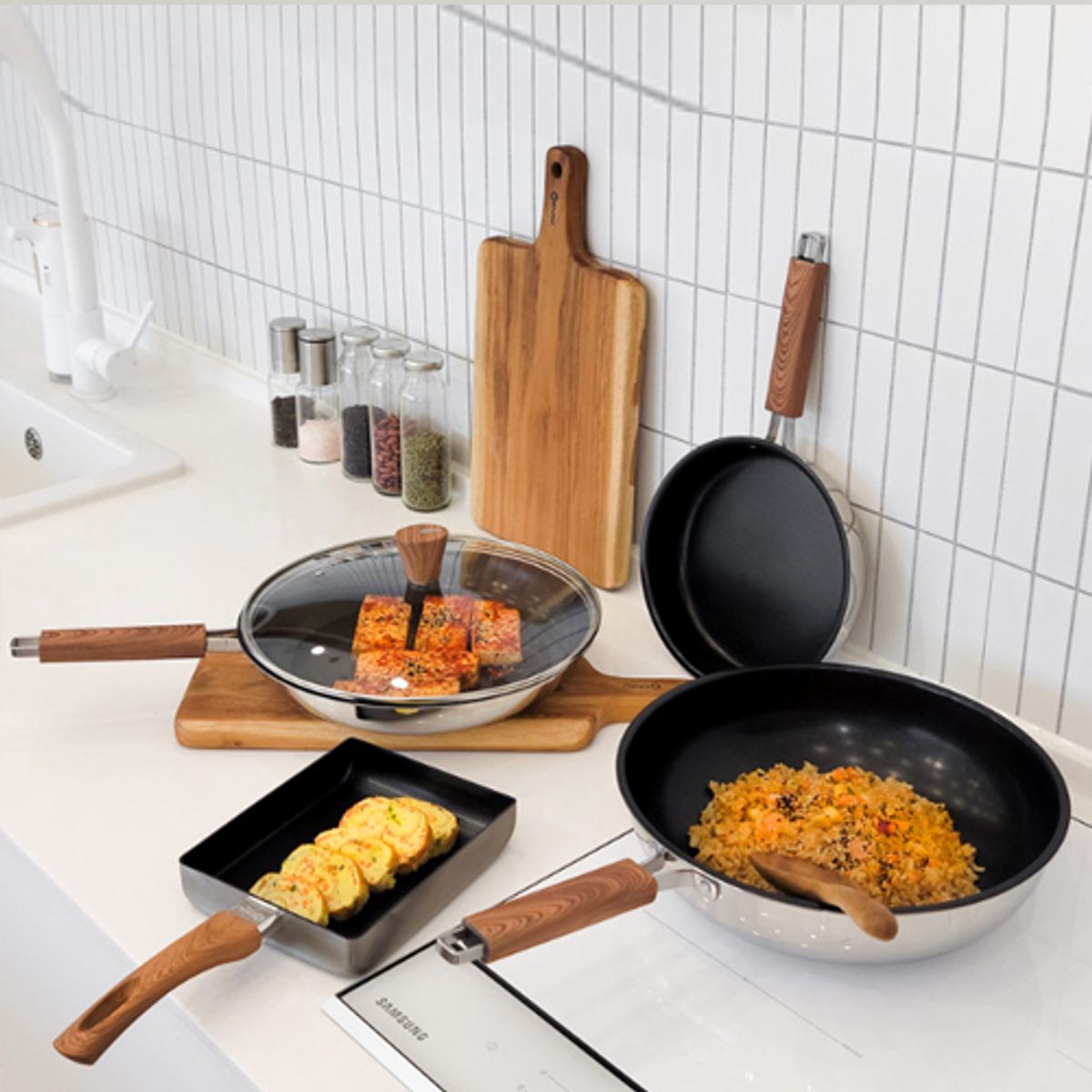 열 전도율 좋은 IH 스텐 후라이팬 5종 세트
