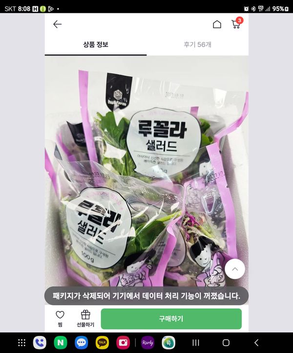 개별포장 맘에 들고 싱싱한 채소 상태로 만족합니다 가족이 적어 어찌 먹을까 생각중 ㅎ