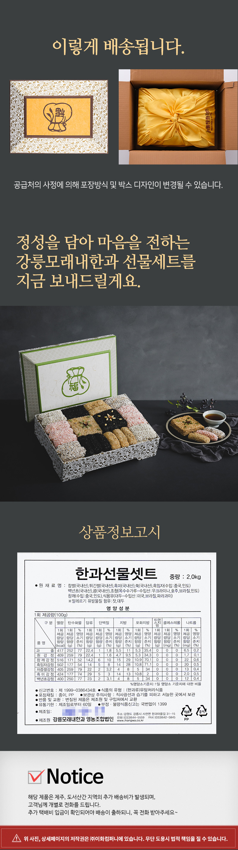 [강릉모래내한과] 강릉사천 모래내한과 찹쌀 강정 과즐 선물세트 (한지2호)3단 2kg