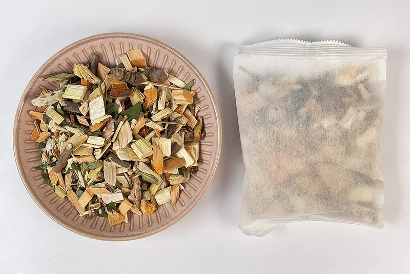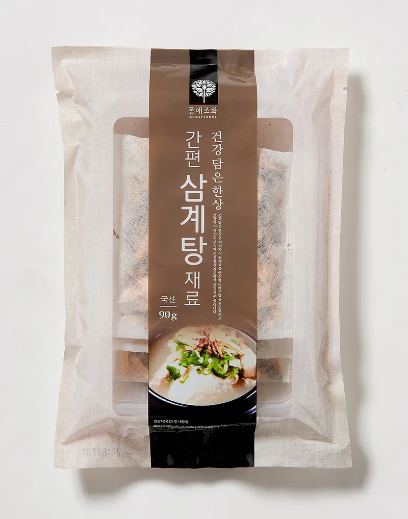 삼계탕 끓이실 때 재료 하나하나 준비하기 번거로우시죠? 직접 엄선한 국산 한방 재료를 작게 잘라 부직포에 담았습니다. 부직포 그대로 넣고 끓이기만 하면 깊고 진한 국물이 완성!