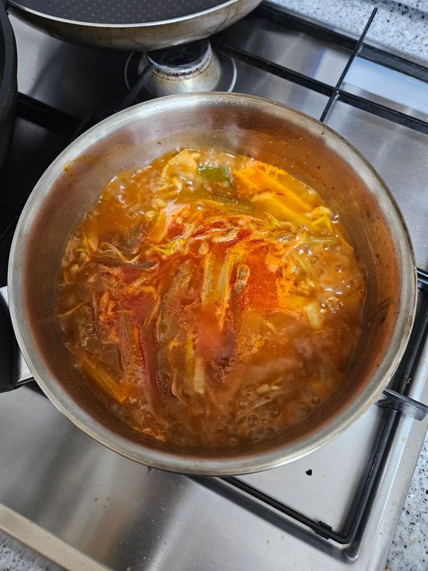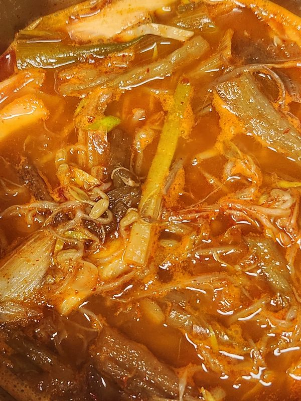 얼큰칼칼하고 시원하네요. 숙주랑 야채 식감도 좋고 결대로 찢은 고기랑 어울려서 맛있어요. 한끼 식사로 해장국으로 참좋습니다.