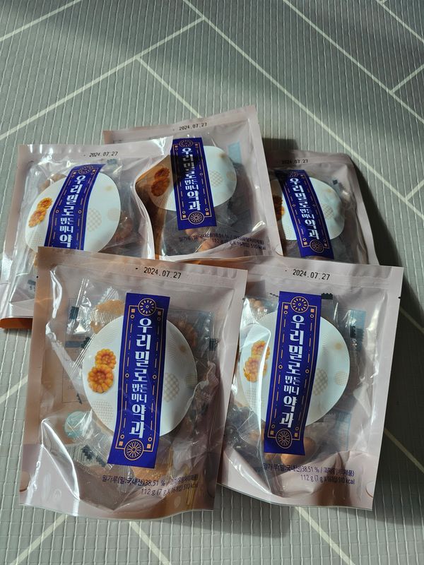 처음엔 작아서 그런지 약과보다 쿠키맛이 나서 별로인가 싶었는데 맛있어요..식감도 맛알못인 제입맛에는 약과와 쿠키의 중간인거같고 맛도 약과와 쿠키의 중간즘인거 같아요. 하나씩 아니고 일인일봉 하려고합니다.