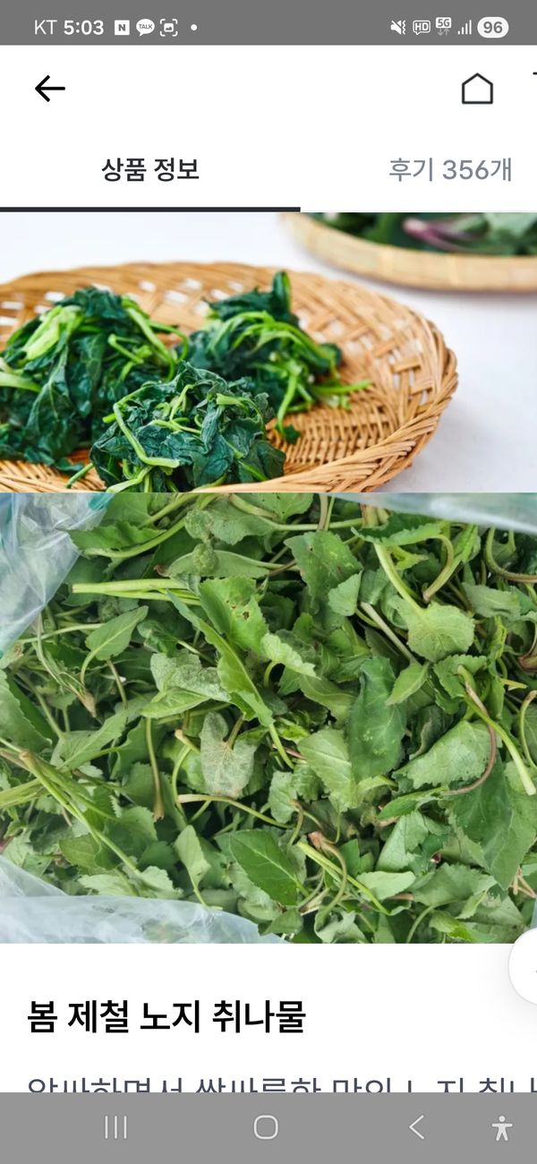 아침에 채취하여 바로 받은거 처럼 싱싱하고, 다듬었으때 버릴것이 별로 없었습니다. 물론 먀도 최노 였습니다.