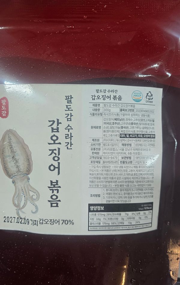 오징어가 도톰하니 쫄깃하고 양념맛도 좋고 맛있어요 양이 적은듯하여 대패목살이랑 같이 볶아 먹었더니 맛있네요!!!
