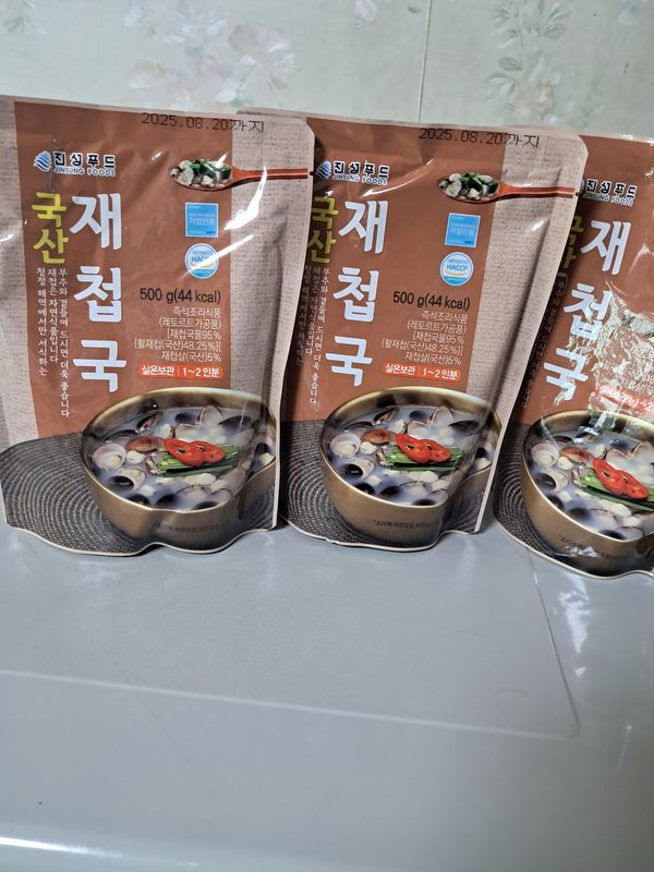 실온 보관인것 빼곤 딱히 사고싶은 생각이 안듭니다.국물은 2인분 될지 모르겠으나 타 냉동보관 제품보다 재첩이 너무 적게 들어있어요.맛도 타제품 비교 그리 신선한 맛이 안나구요. 제품에 더 신경 쓰셔야 될것 같습니다.