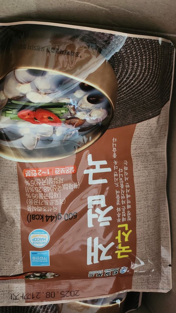 처음에 개봉해서 부어보니 양도 적은 것 같고 건더기도 별로 없어 실망했어요. 부추와 홍고추를 넣어 끓였더니 맛은 괘안았습니다.