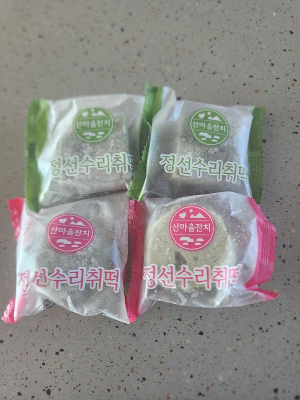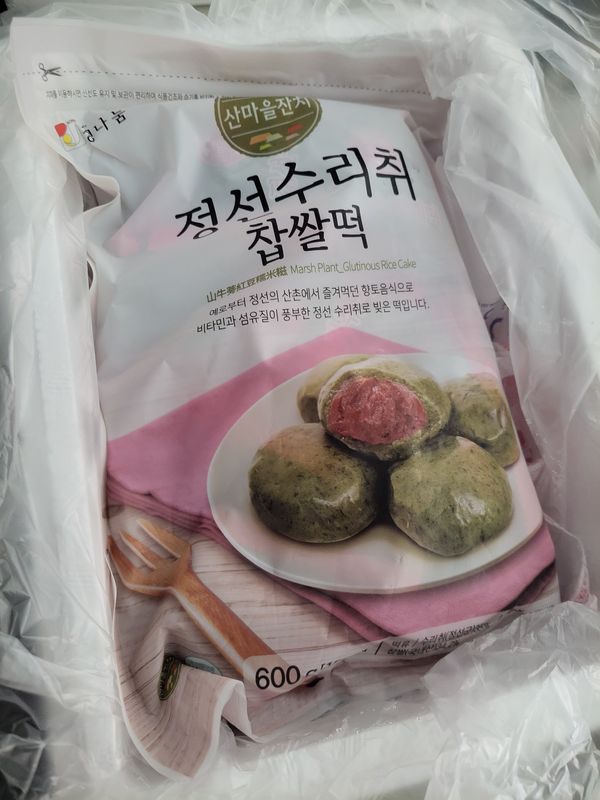 수리취떡이 궁금해서 주문했는데 적당한 크기와 쫄깃한 식감으로 딱 좋아요 해동되면 말랑해져서 먹기 편합니다