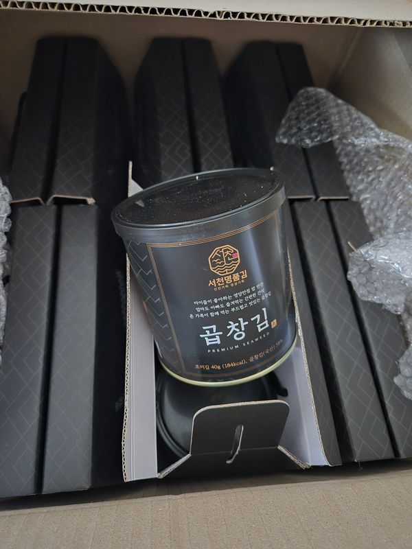 맛있는 곱창김이 도착했어요 배송도 빠르고 배송상태도 최고네요 할인받아 가격도 싸게 구입하고 아직 먹어보지 않았으나 맛있겠죠?