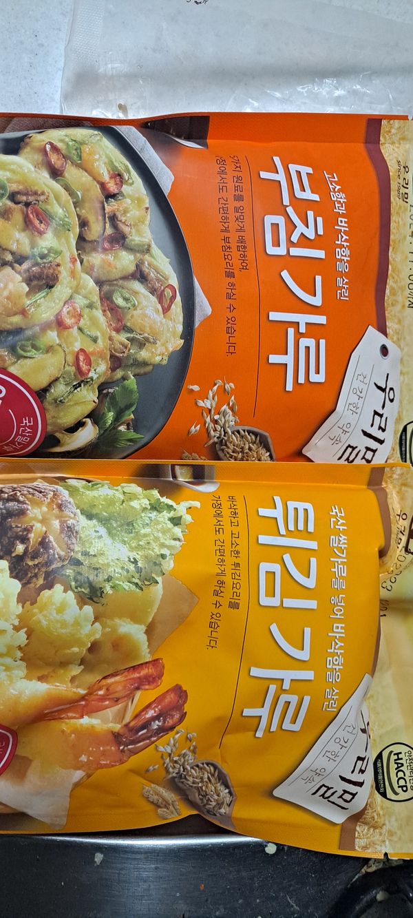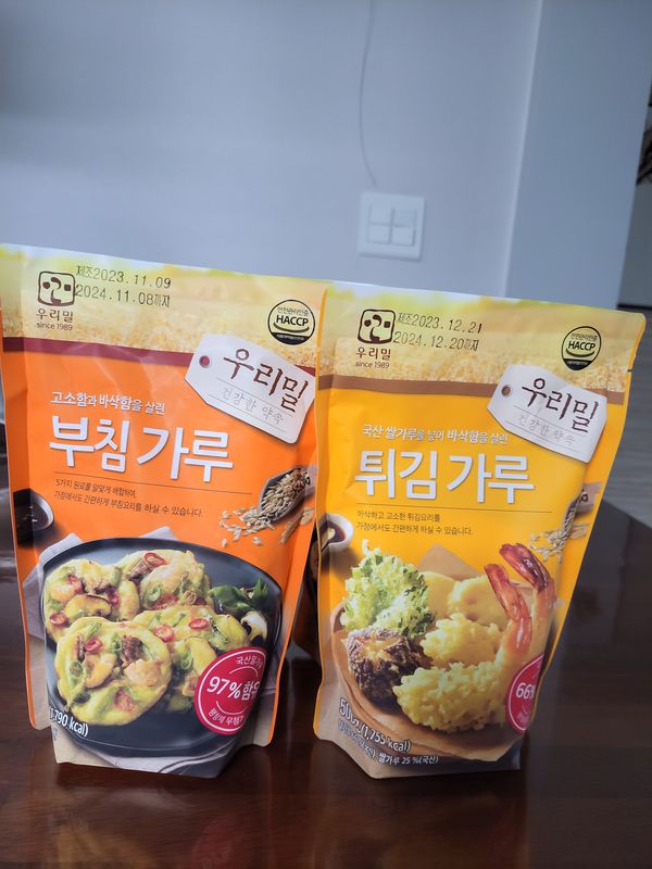 주문한 부침가루랑 튀김가루가 왔는데요..아직 개봉하진 않았지만 포징지,성분표시 등을 보니까 믿을만하고 기대가 되네요. 굿!