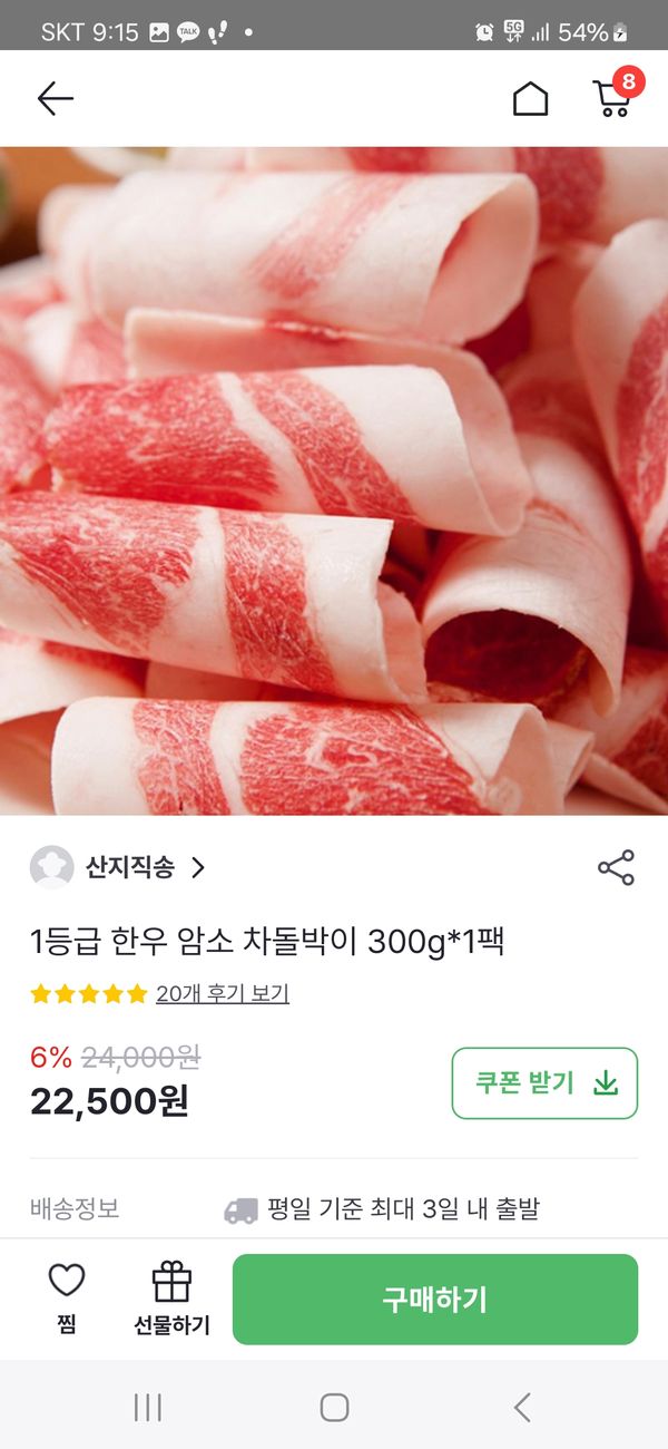 맛있어요. 기름기도 적당하고 야채와 함께 샤부샤부 해서 맛있게 먹었어요. 300g이란 양도 적당한것 같고요.