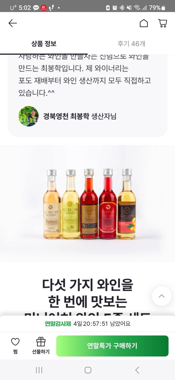 직접 재배한 포도로 담근 미니 와인 5종 세트 100mL*5병