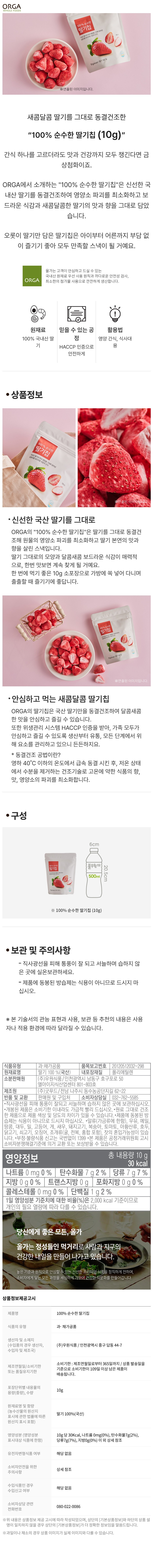 [올가] 100프로 순수한 딸기칩 (12g) 5개