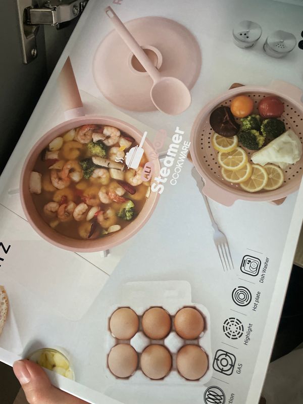 깔끔하게 잘 포장돼서 안전하게 잘 도착했어요. 로제 핑크 색깔이 이쁘고 좋아요. 사이즈가 크지도 작지도 않은 가볍게 사용하기 좋아요. 찜기와 뚜껑이 실리콘이라서 사용하기 편하고 세척도 쉽고 좋으네요. 다양한 열원 사용이 가능해서 좋고 인덕션 사용이 되니깐 좋아요. 고구마 야채 계란 등등 쪄서 강아지 간식 줄 때 잘 사용할 것 같아요.