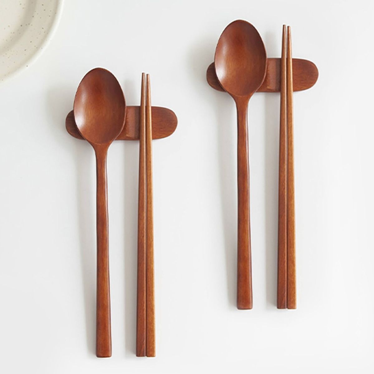 천연 옻칠 우드 수저+수저받침 2인 총 4P