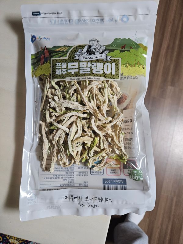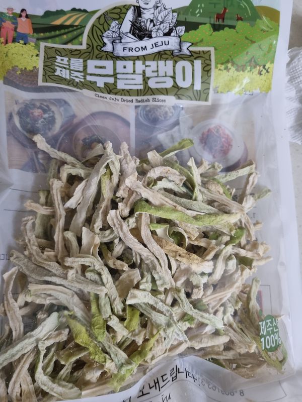 오레전 저이 작은아들이제주도 둘정도 잊을때 제주무우말랭를 보네줘서 잘먹은기역이나서샀습니다 제가 당요가잊써 무우말래이로 차을먹으니 당요에도웁이되더라구요 제주도무우는 타지방 무우보다 맛이월등촣은것같아요
