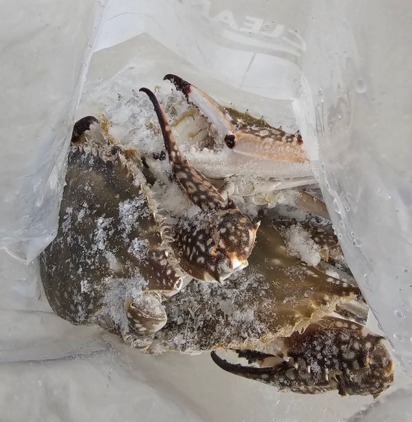 아이스박스에 활 꽃게를 넣고 얼음을 가득 채워 보내드립니다. 배송 중 활 꽃게가 기절하여 죽어 있을 수 있지만 당일 잡은 꽃게를 바로 보내 드린 것이기 때문에 신선도는 아주 좋습니다.