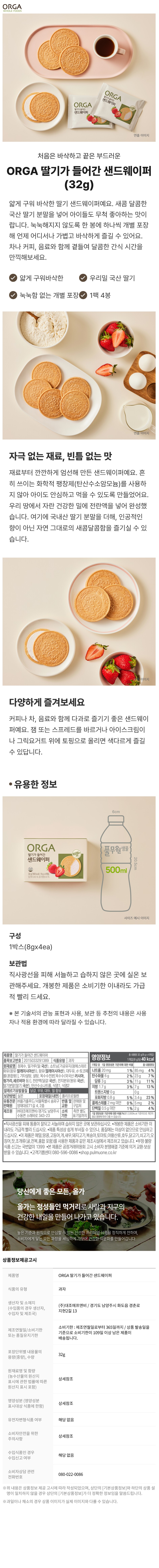 [올가] 딸기가 들어간 샌드웨이퍼 (32g) 6개