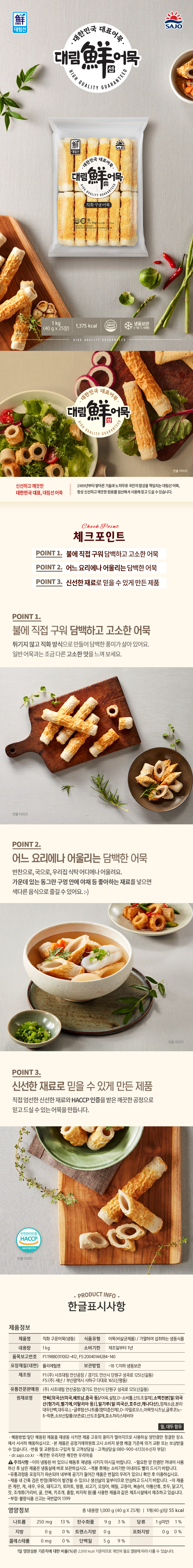 대림냉동 직화구운어묵(냉동)1,000g x2개 /어묵