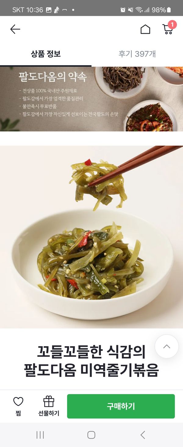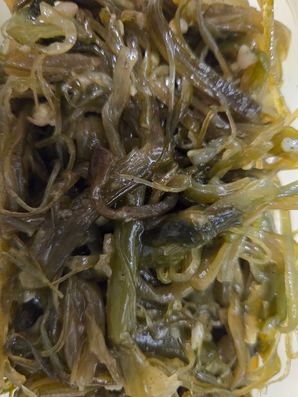 83세 음식장인이신 어머니 받자 말자 버리라고 해서 받은 날 다 버렸습니다. 돈받고 팔면서 이걸 음식이라고 판다고요? 더럽게 느끼한 미역줄기 오래된 무침. 다시는 이딴 물건 팔지마세요. 정직은 생명입니다