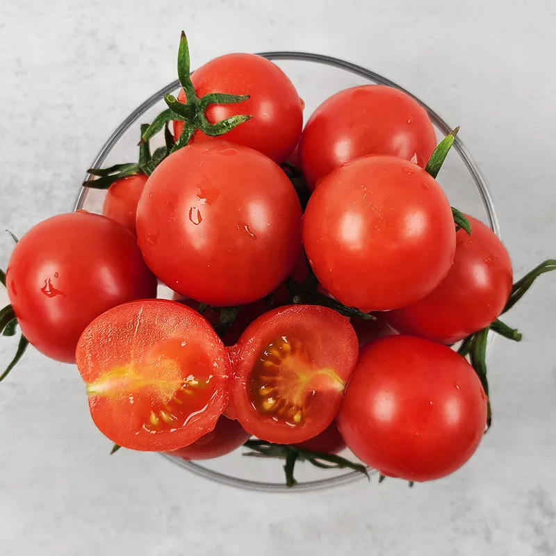 한 입에 쏙 넣어 간편하게 즐길 수 있는 방울 토마토에요. 씹을수록 톡톡 터지는 새콤달콤함! 은은한 달콤함에 자꾸 손이 가는 중독적인 맛이에요. 샐러드 토핑으로, 토마토주스로 만들어 먹어도 좋아요.