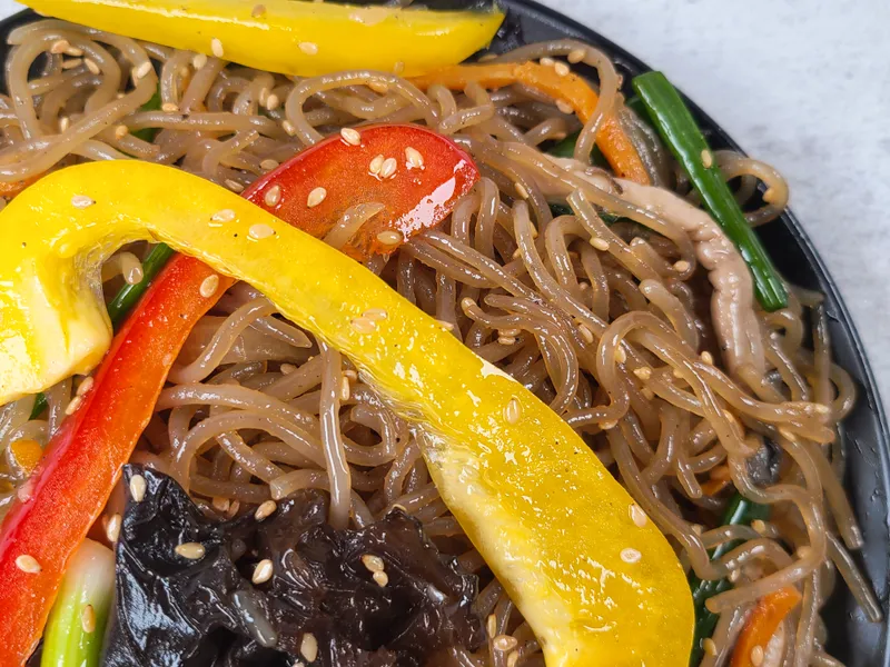 탱글탱글한 당면과 각종 야채를 달콤 짭짤하게 특제 간장 소스로 볶았습니다. 다양한 재료들이 넉넉하게 모여 든든하게~ 자극적이지 않은 맛으로 아이들 반찬으로도 좋아요.