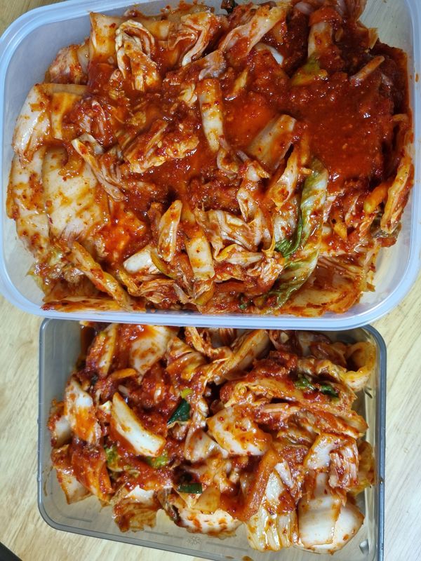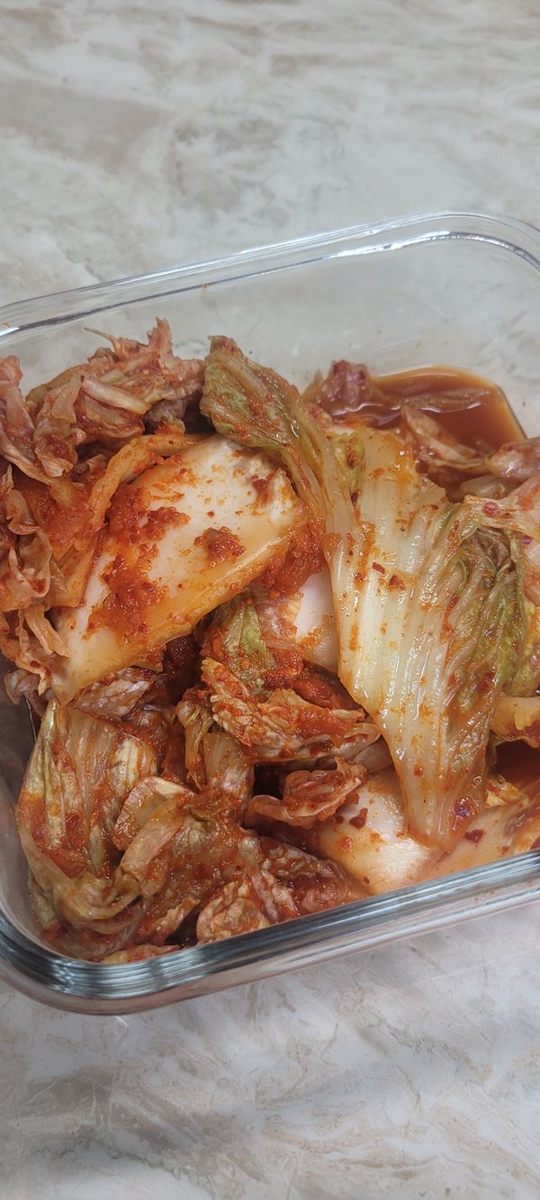 약간 매콤하고 생생한 김치 감사합니다. 잘게 썰어져 있어서 자취생이나 연세드신 어르신들 드시기 좋을거 같습니다. 첫맛은 배추소금맛이 많았는데 하룻밤 지나니 중화되어 간이 딱 좋아졌어요. 익혀서 김치찌개나 김치볶음밥 해도 참 좋을거 같습니다.