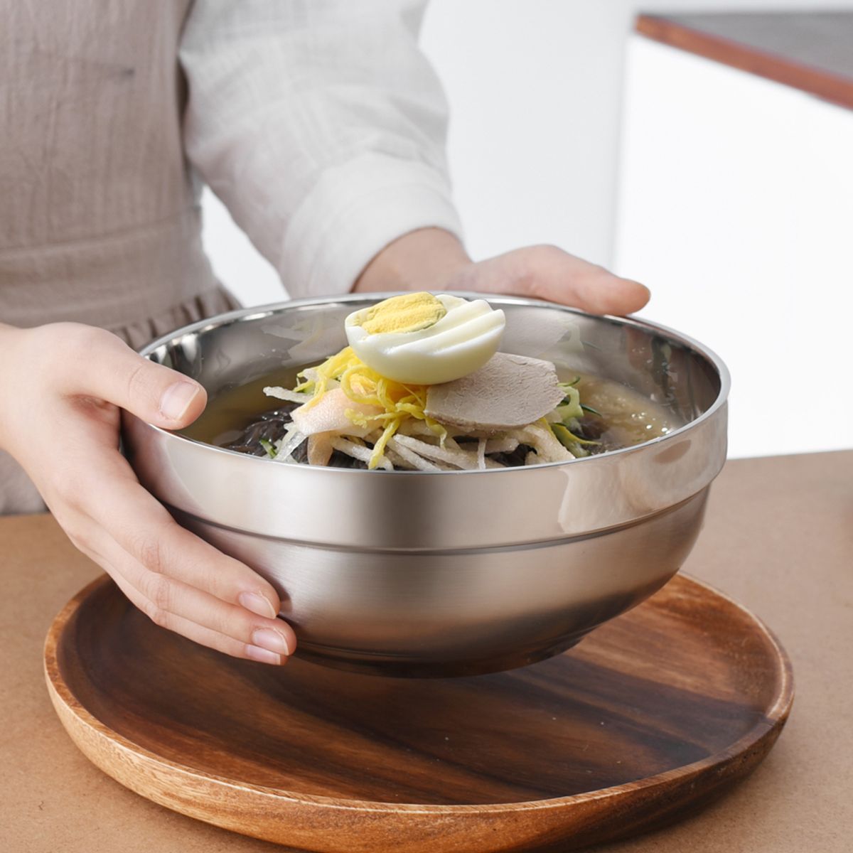 보온 보냉 2중 스텐구조 면기 4개 젓가락 4벌 세트