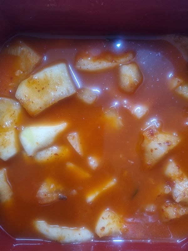 넘 딱딱하지도 무르지도 않고 맵지도 않고 젖갈맛도 안나고 딱 맛있는 상태에요. 앞으로 석박지는 이걸로만 주문할겁니다.