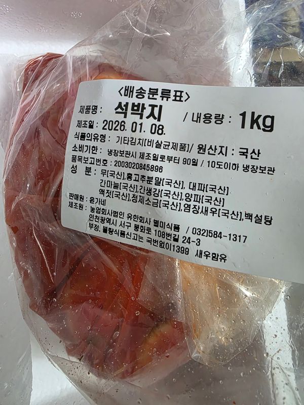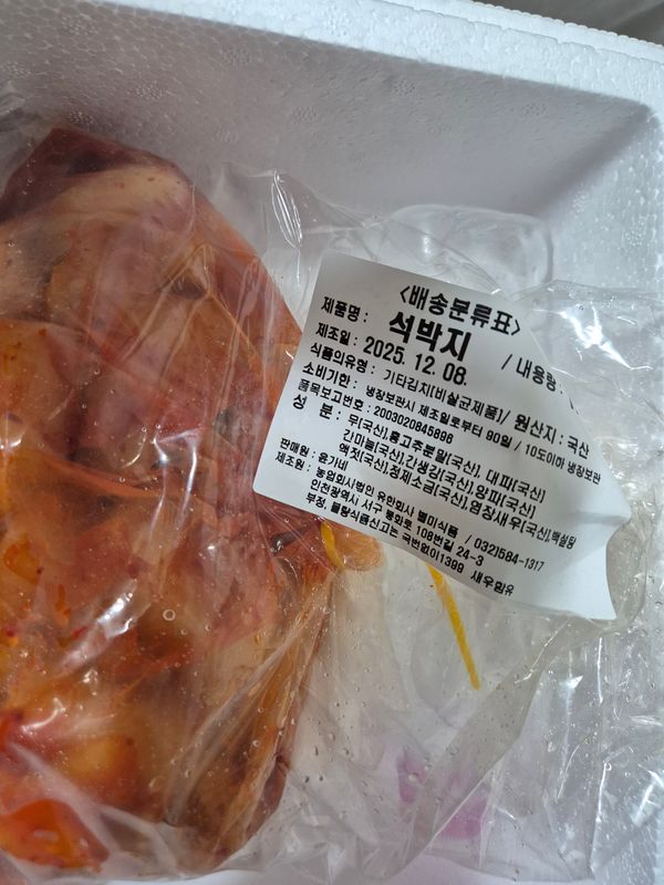 작년에 시키고 또 시켰어요~ 너무 맛있...(츄릅~)어요^^ 배송중에 아이스박스가 파손되어서 내부사정을 걱정했지만 다행히 김치에는 아무 이상이 없네요^^ 잘 먹겠습니다~🫰🏻 겨울이니 굳이 아이스워터를 두 개나 안 넣으셔도 오면서 익어서 맛있을 것 같네요^^