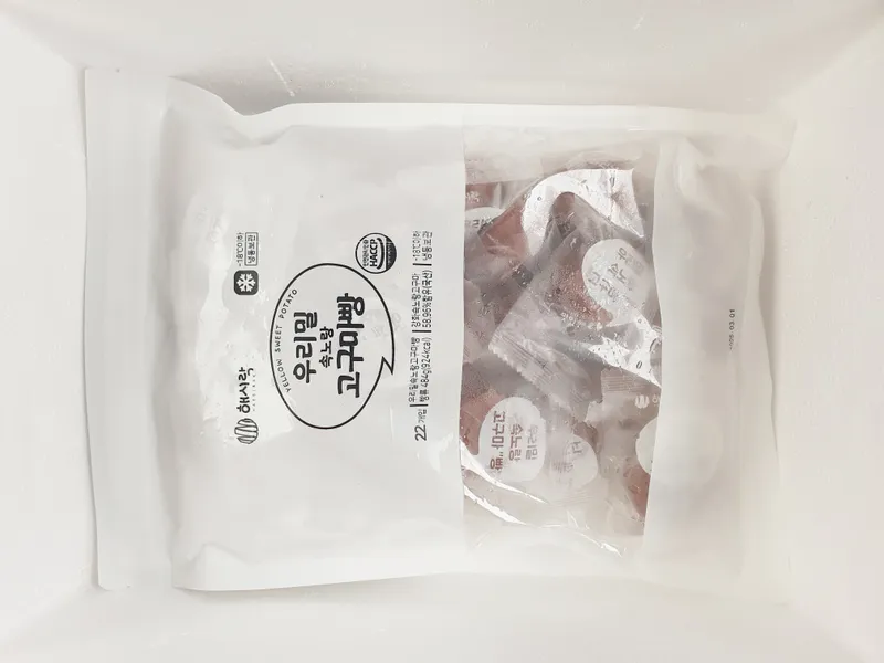 낱개로 포장된 고구마빵을 먹을 만큼만 꺼내서 30분 자연해동해 주세요.