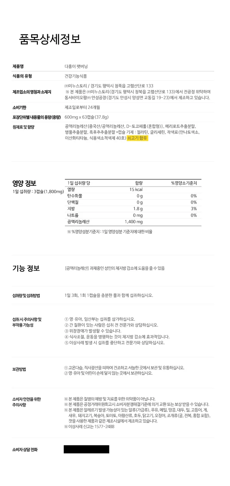상품정보 제공고시 (원재료 및 원산지 등)
