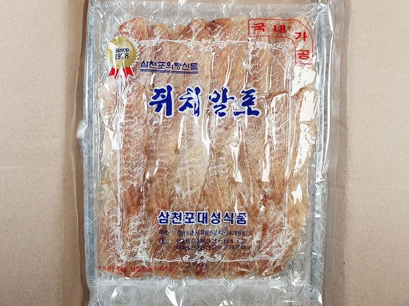 대를 이어 오랜 전통을 자랑하는 삼천포 쥐포 명가에서 제대로 만든 쥐치알포입니다. 50년 노하우를 담아 만들어 딱딱하지 않고 부드러운 식감을 자랑합니다. 짜지 않아 술안주로 먹으면 한 봉지가 금방 사라질 거예요.