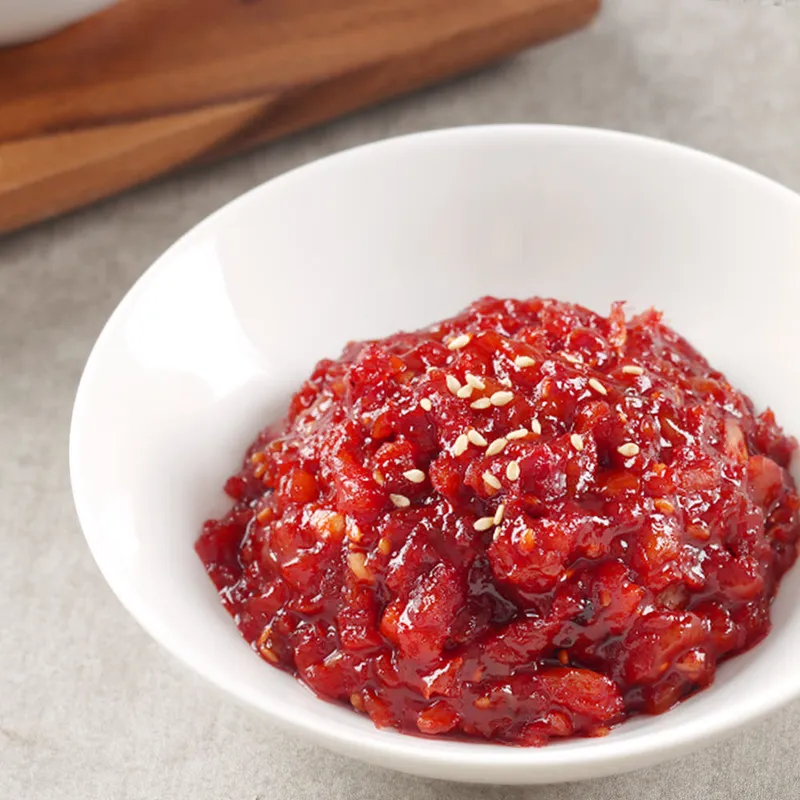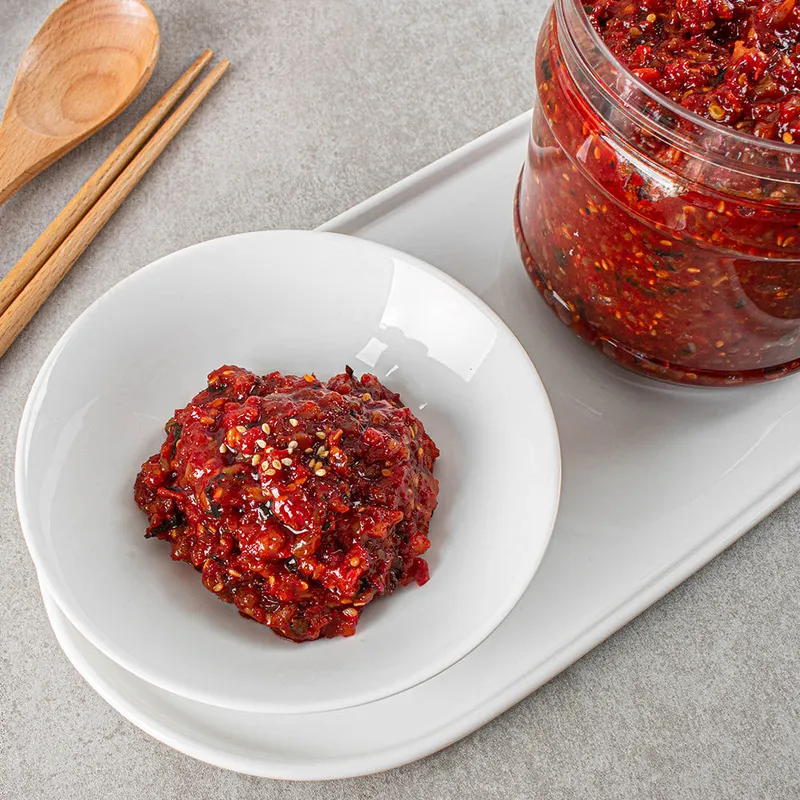 정성스럽게 만든 젓갈입니다. 건무와 고춧잎을 더해 더욱 깊고 풍부한 맛을 완성했어요. 밥반찬부터 요리 양념까지 다재다능하게 활용할 수 있습니다.