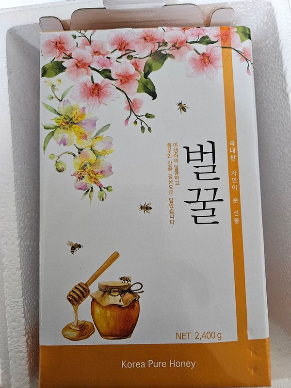 박스에 넣고 스티로폼으로 안전하게 포장돼서 왔네요.인삼청 만들려고 샀는데 꿀이 진하고 너무 맛있어요.잘 샀어요!