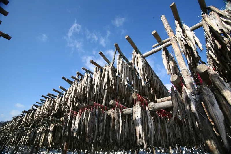 강원도 인제 용대리 일원에서 자연 건조로 생산한 황태입니다. 다른 지역에 비해 밤, 낮의 온도 편차가 심해 낮에는 녹고 밤에는 어는 과정을 20번 이상 반복하면서 최상의 황태가 만들어집니다.