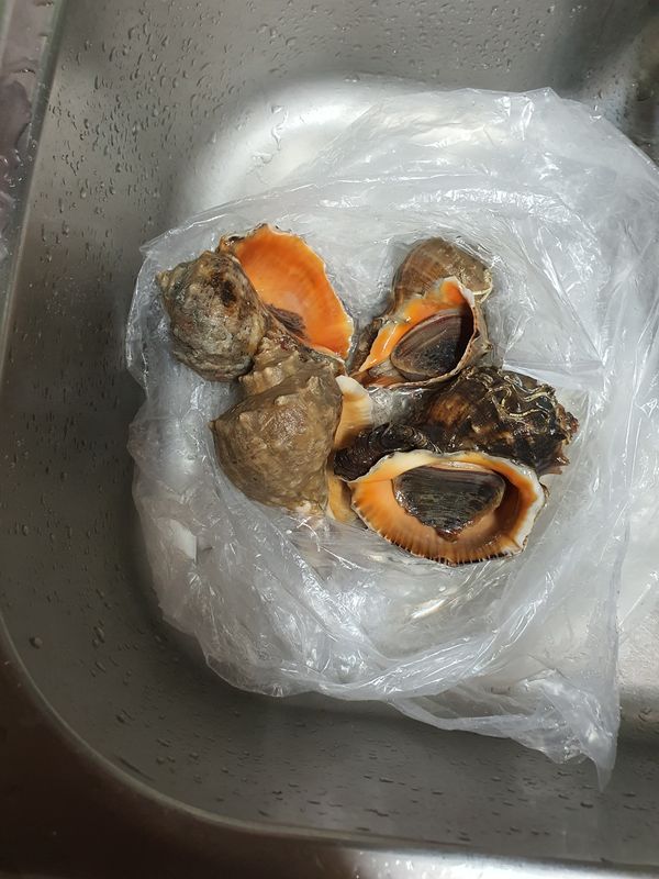 소라사이즈 주먹소라 크기이고 신선해요 서비스로 섭도 주셨네요 잘 먹겠습니다