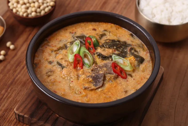 국내산 콩과 한우, 국내산 얼갈이김치를 넣어 구수하고 깔끔한 맛이 일품인 한우 우리콩 비지찌개입니다. 한우의 부드러운 고기 식감과 아삭한 김치, 구수하고 담백한 비지의 맛스러운 조화를 경험하실 수 있습니다.