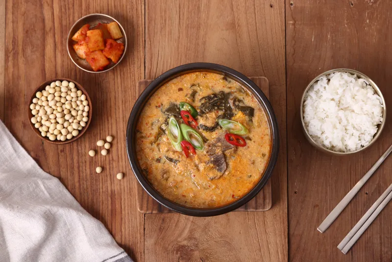 질 좋은 한우와 국내산 콩을 사용하여 만들었습니다. 여기에 얼갈이김치까지 넣어 새콤 담백한 비지찌개 맛과 아삭한 식감을 표현했죠. 국내산 재료를 사용한 만큼 신선한 풍미를 선사합니다.