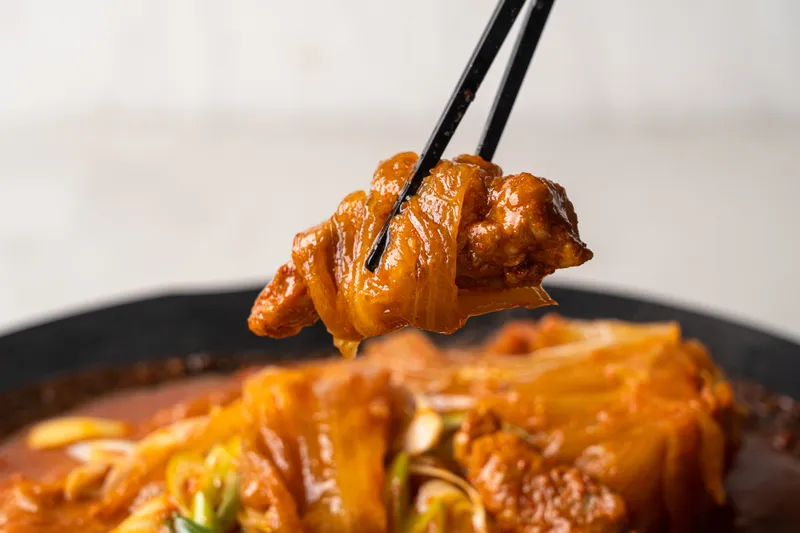 김치찜에서 가장 중요한 재료는 뭐니뭐니해도 김치입니다. 배추, 고춧가루, 마늘, 천일염까지 모두 꼼꼼하게 엄선한 국내산 재료만을 사용해 담근 묵은지가 들어가 맛의 깊이가 다릅니다.