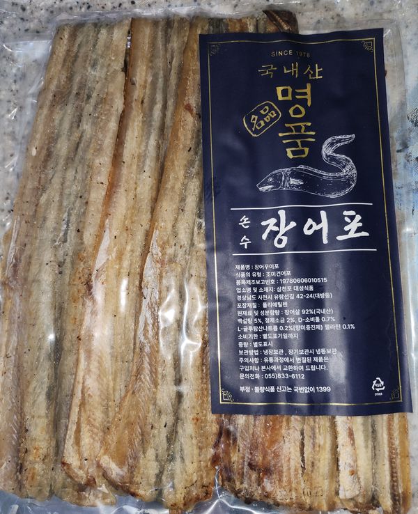 국내산이라부드럽고좋앗습니다 의견을 드리자면 장어를 먹기좋게 찢어서판매하면 양념장해서 무쳐먹어도 괜찬겠네요 저는 찢어서무쳐먹엇드니만 밥반찬으로 너무 좋앗습니다