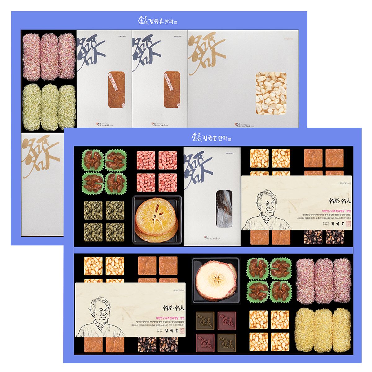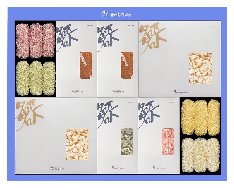 2단으로 이루어진 상자 안에는 약과, 강정, 유과가 다채롭게 들어가 있습니다. 국내산 꿀과 조청을 사용해 깊은 풍미를 주는 꿀약과! 국내산 찹쌀을 발효하여 겉은 바삭, 속은 쫀득한 식감을 살린 유과까지! 맛있는 전통간식을 즐겨보세요.