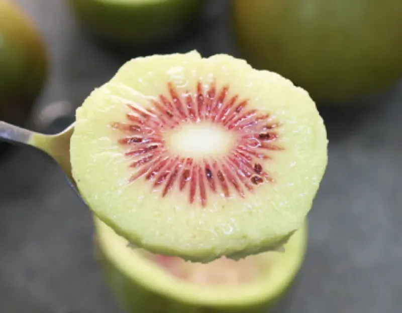 레드키위라는 이름답게 초록빛과 붉은빛이 어우러진 과육을 자랑합니다. 보기에도 예쁜 만큼 부드러운 과육과 강한 단맛이 매력적입니다.